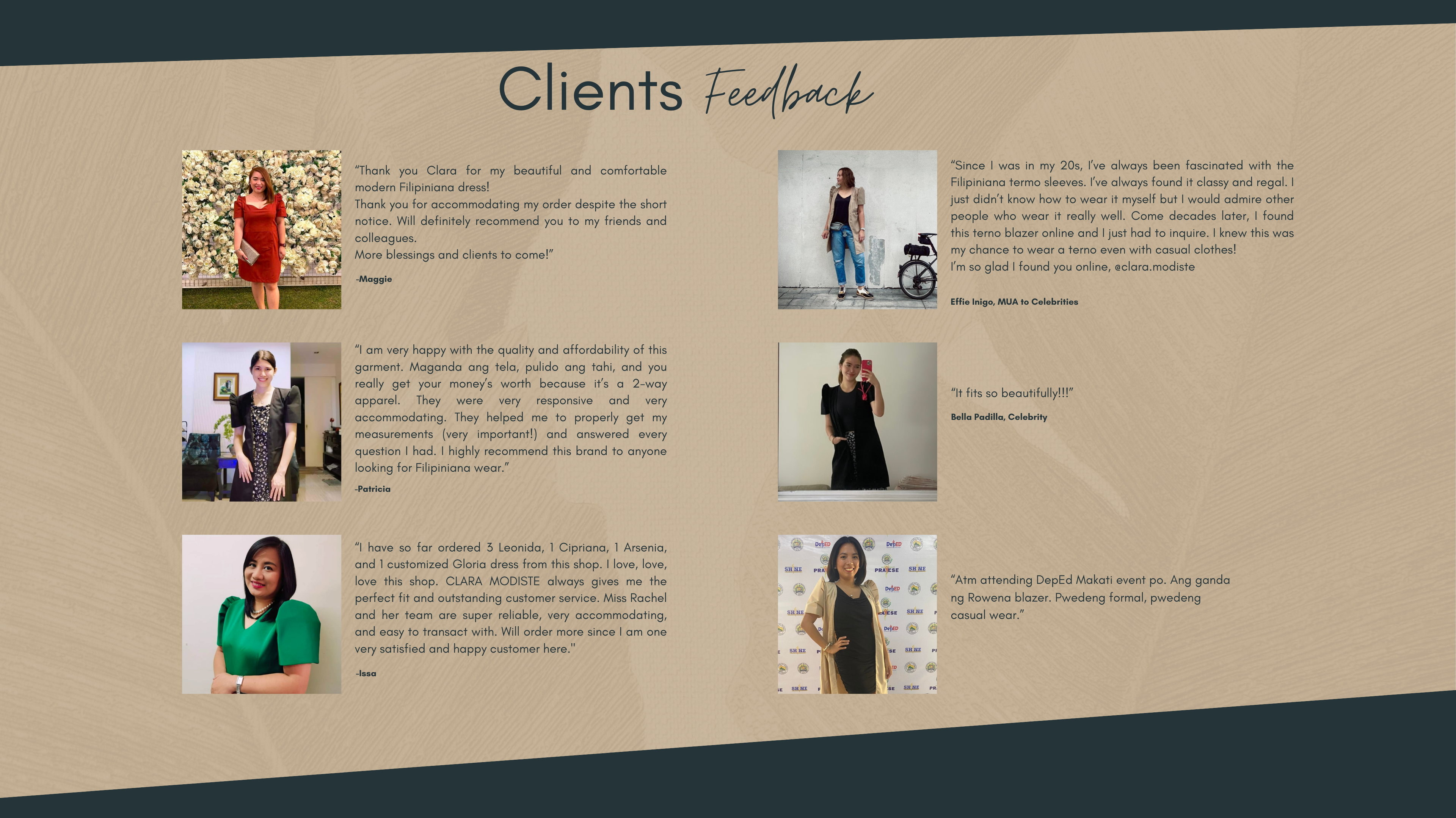 All our products are carefully made by our local dressmakers in Taal, Batangas. We take pride in creating affordable and quality Filipiniana apparel for a greater purpose. If you also wish to see our clothing in our modern Filipina's daily wear, please show us your support by promoting our shop or giving us feedback.